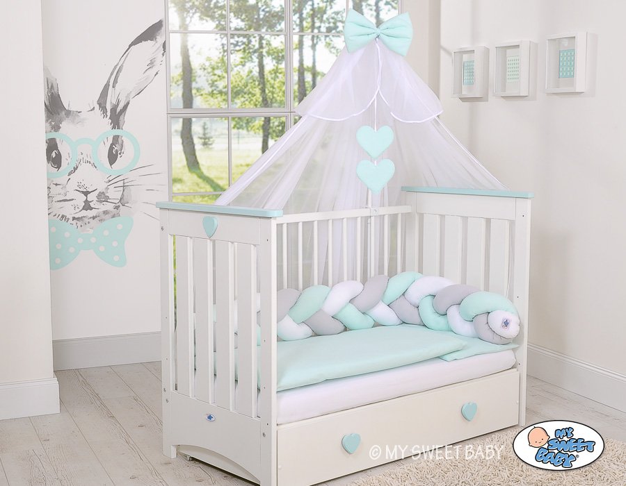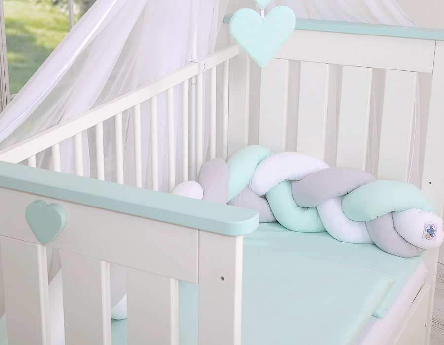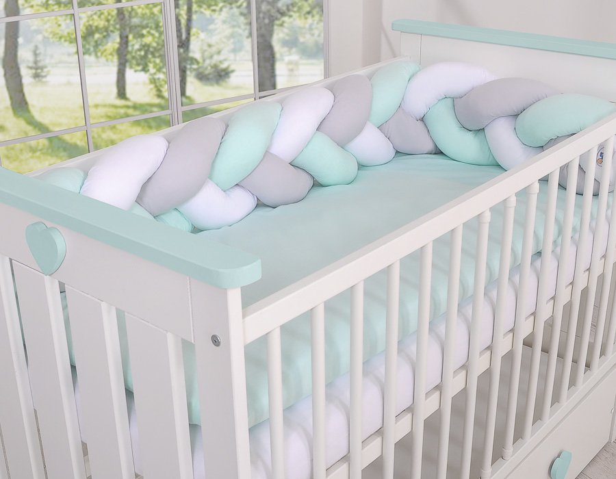 Beautiful, very soft braided cot bumper made from 100% cotton. Can be fixed to the bars.
