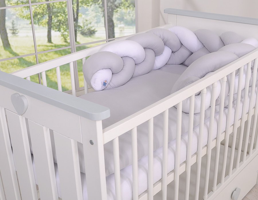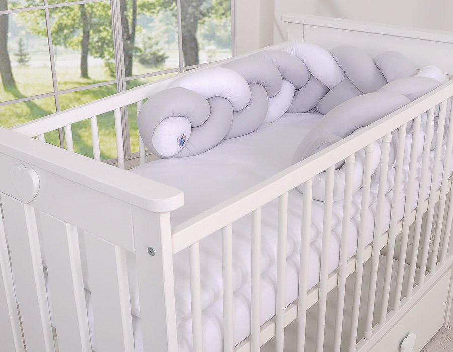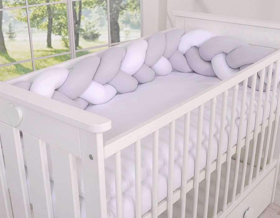 Beautiful, very soft braided cot bumper made of 100% cotton. Can be fixed to the bars.