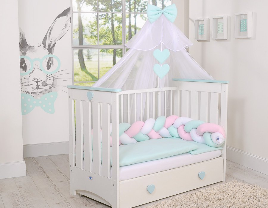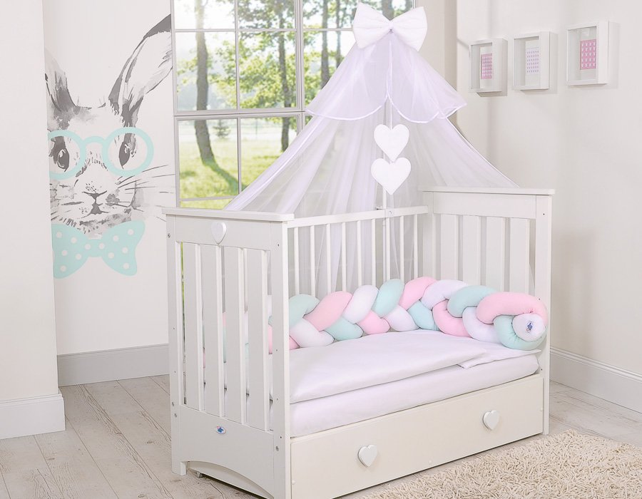 The bumper protects your baby’s hands and feet from getting stuck between the spindles as well as it protects the baby’s head and body from hitting against the cot walls. With the included cotton bows, the nest can be fixed to the bars.