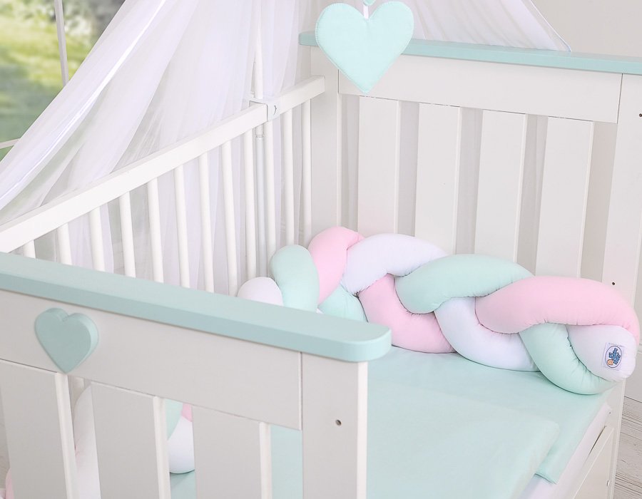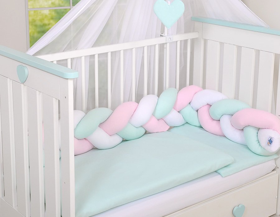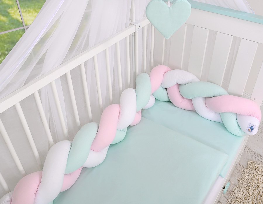 Beautiful, very soft braided cot bumper made from 100% cotton. Can be fixed to the bars.