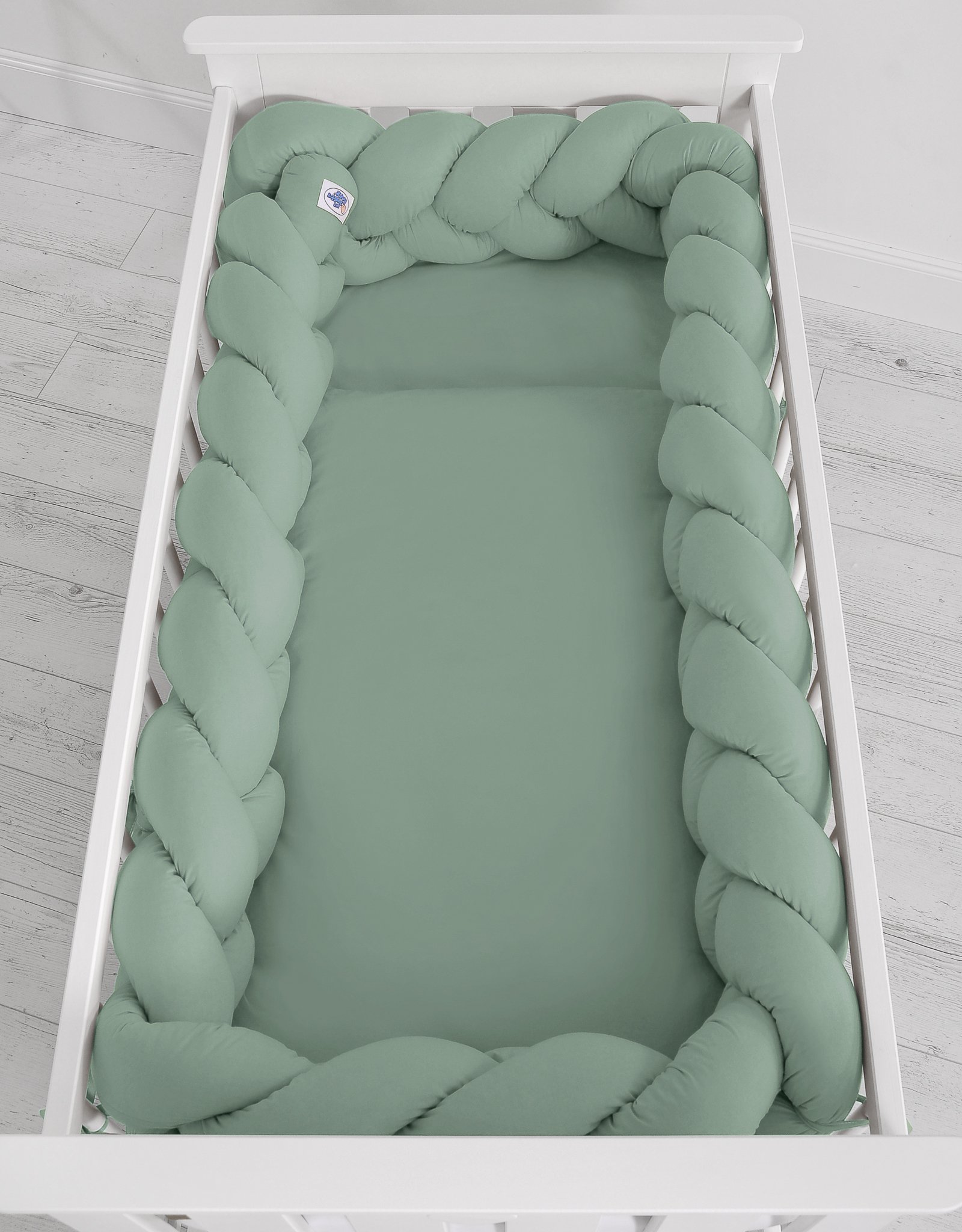 Beautiful, very soft braided cot bumper made from 100% cotton. Can be fixed to the bars.
