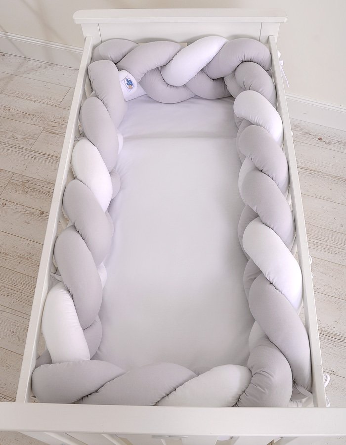 Beautiful, very soft braided cot bumper made from 100% cotton. Can be fixed to the bars.