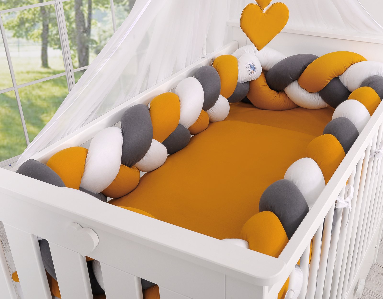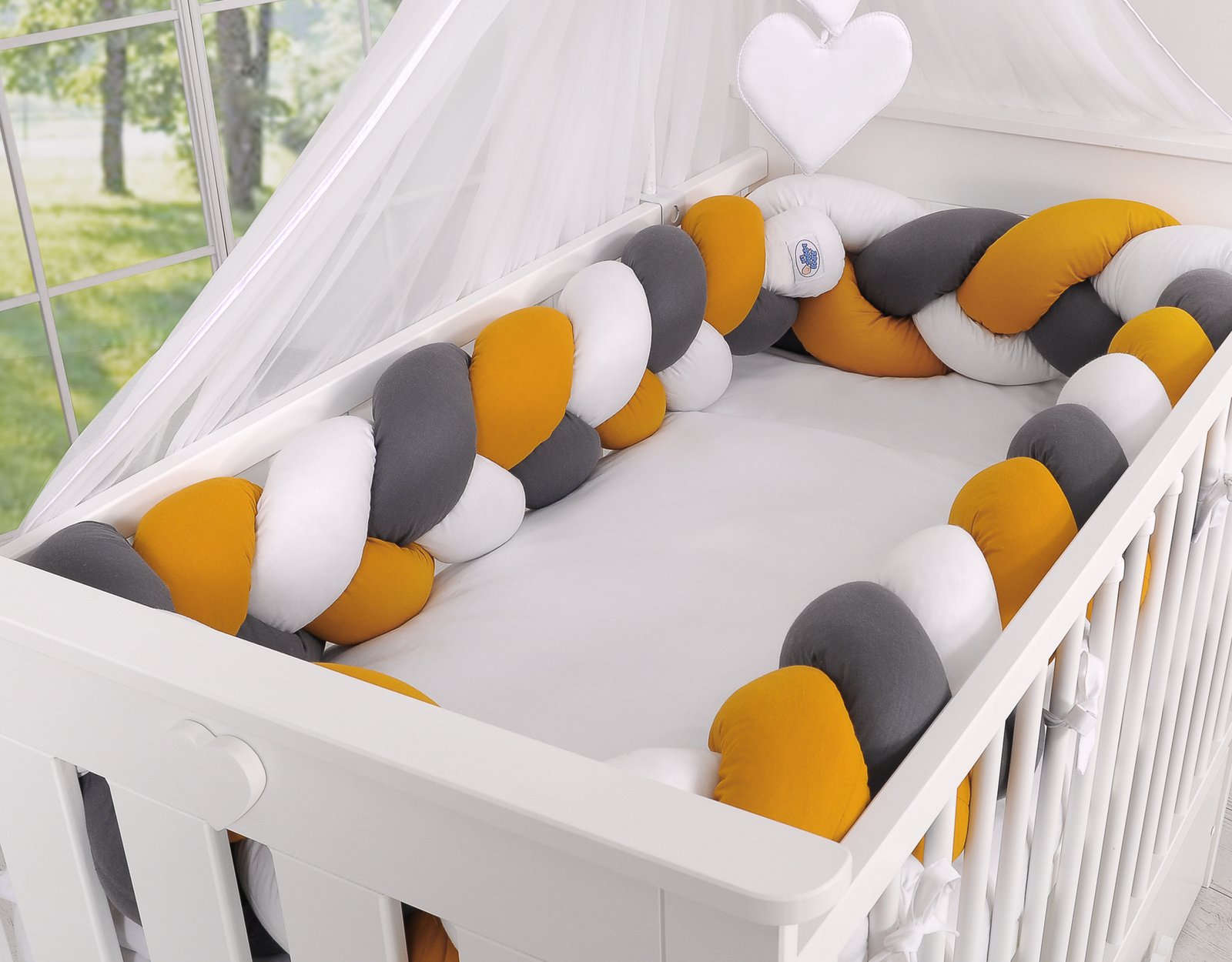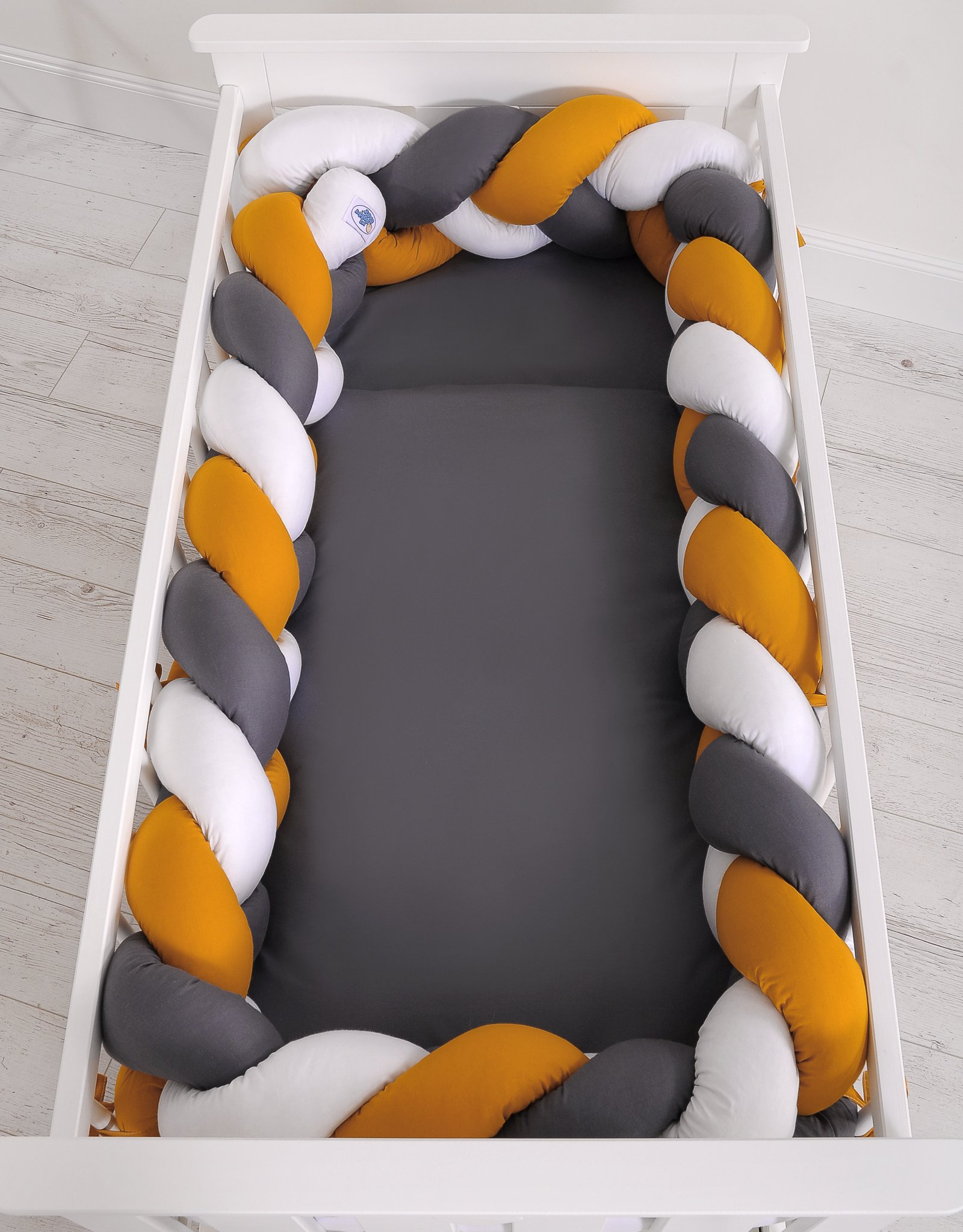 Beautiful, very soft braided cot bumper made from 100% cotton. Can be fixed to the bars.