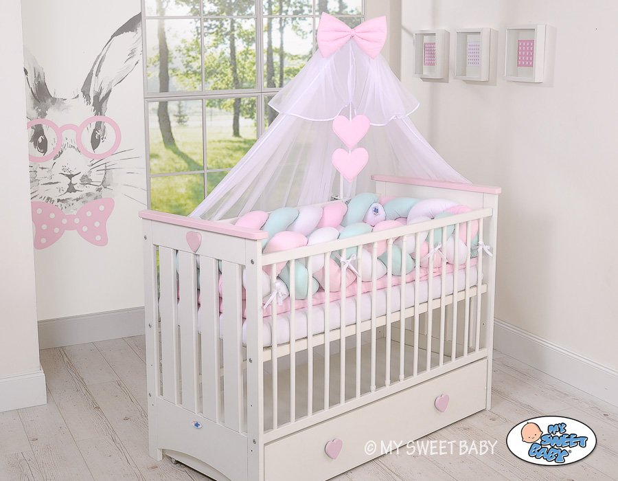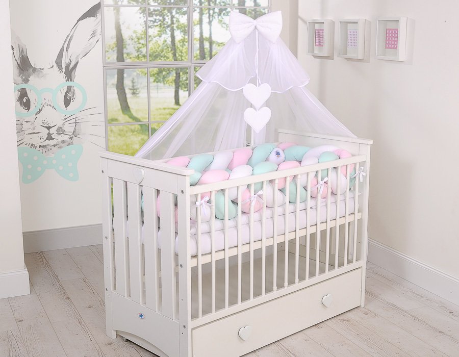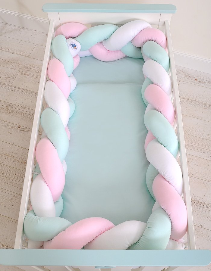 Beautiful, very soft braided cot bumper made from 100% cotton. Can be fixed to the bars.