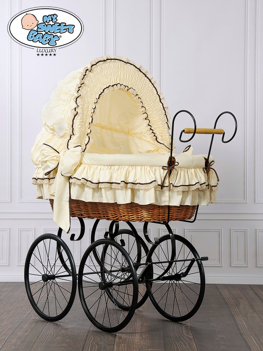→ basket cover with sewn-in soft filling, hood cover, pillow and cover (filling: outer fabric 100% Cotton, padding: 100% Polyester) duvet cover and quilt cover, all from 100 % cotton fabrics