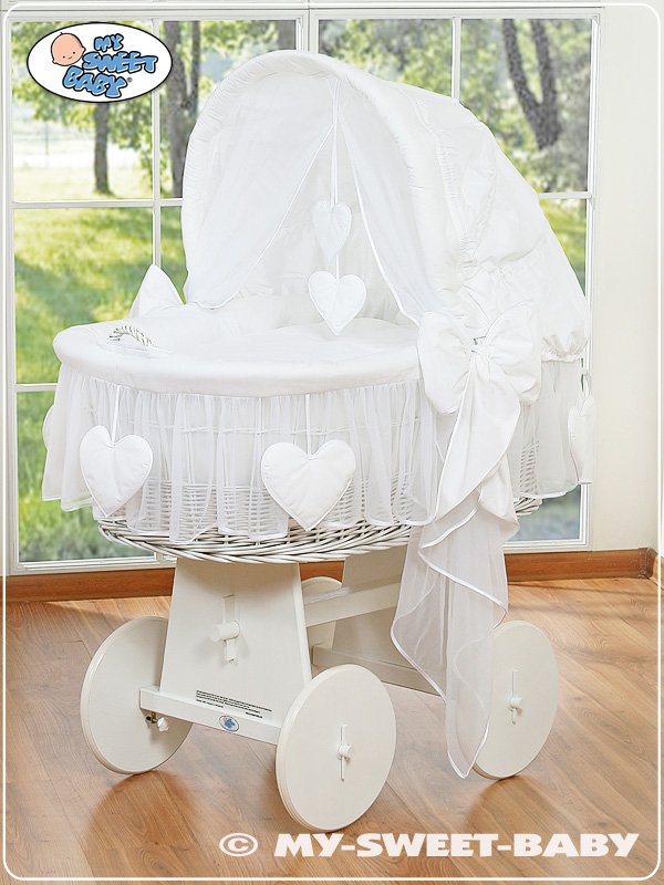 Moses Basket/Wicker crib with hood- Amelie white