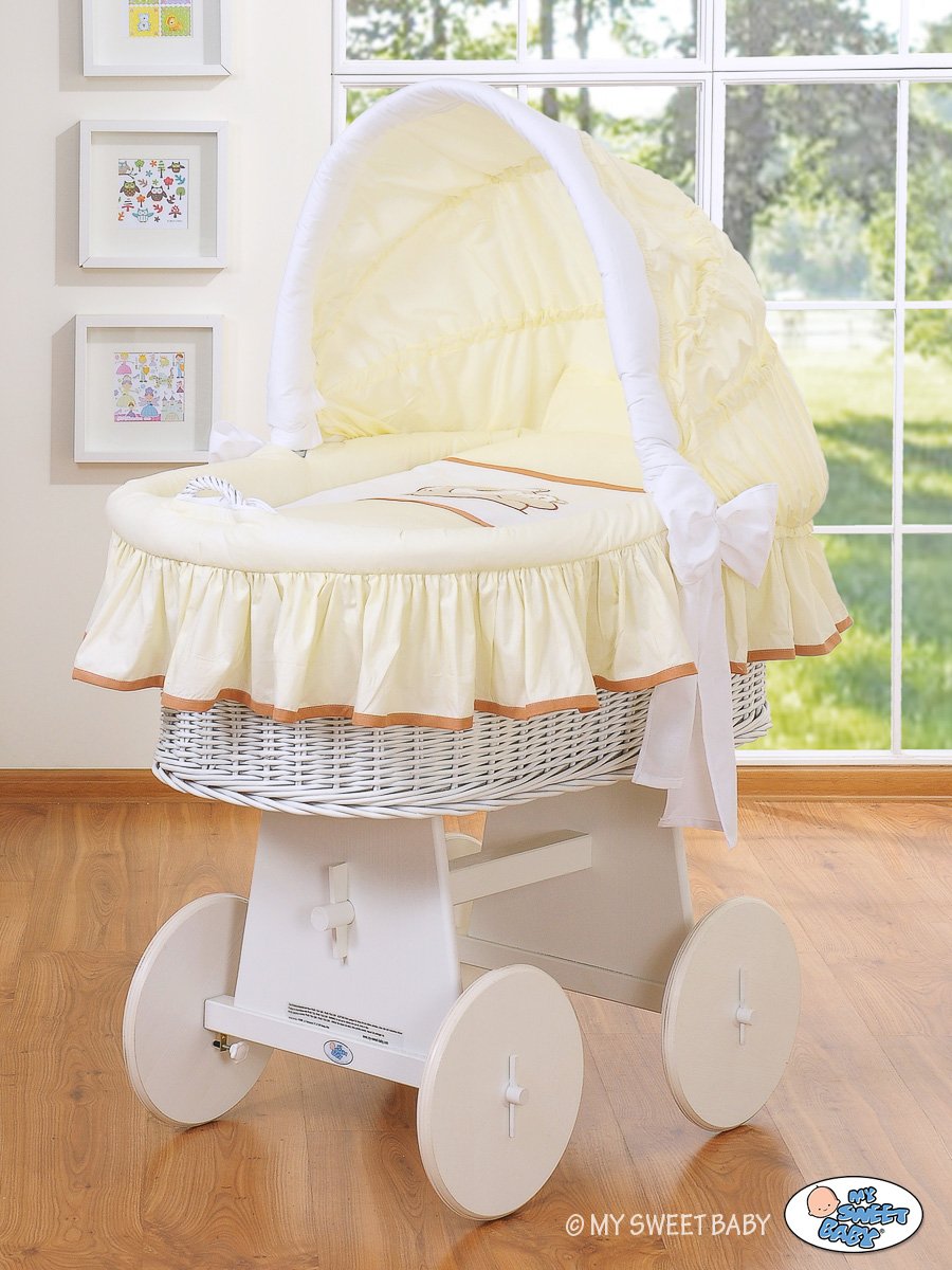 Moses Basket/Wicker crib with hood- Teddy Bear Barnaba cream