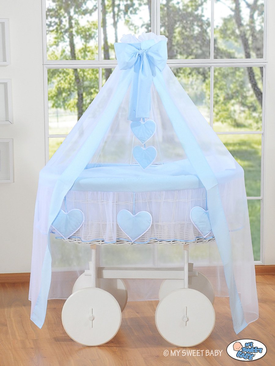 Moses Basket/Wicker drape crib Deluxe- Amelie blue
