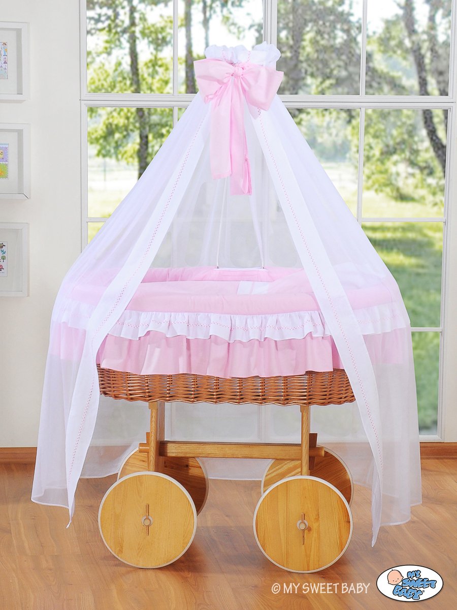 Moses Basket/Wicker drape crib Deluxe- Bellamy pink