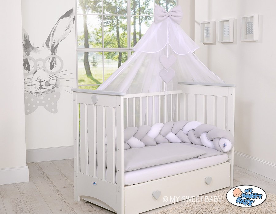 Mosquito net universally suitable for beds 140x70cm and 120x60cm. Suitable for all cots, looks very decorative.