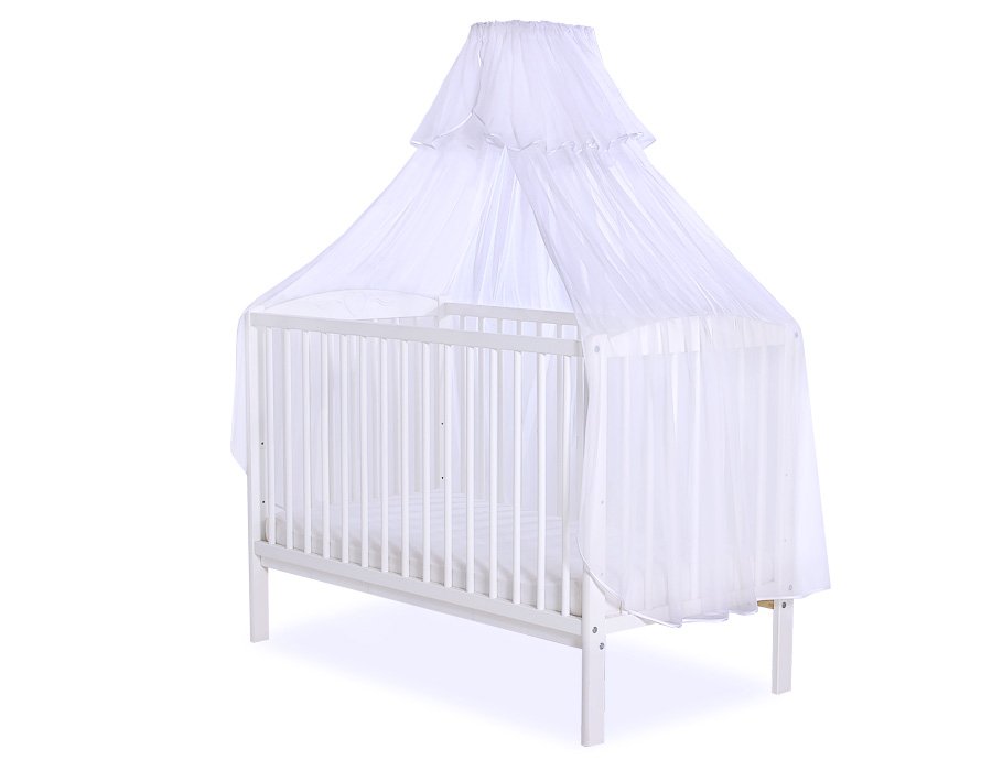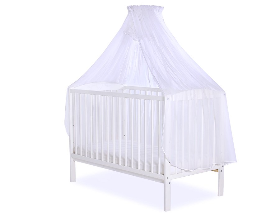 Mosquito net universally suitable for beds 140x70cm and 120x60cm. Suitable for all cots, looks very decorative.