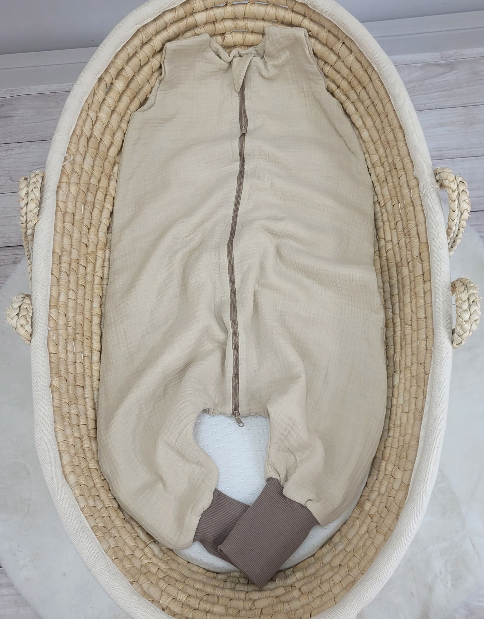 Lightweight muslin baby sleeping bag is made of durable 100% certified cotton crepe muslin. Muslin is nice and pleasant to touch. It does not irritate the delicate baby skin. At the same time it is extremely easy to use.