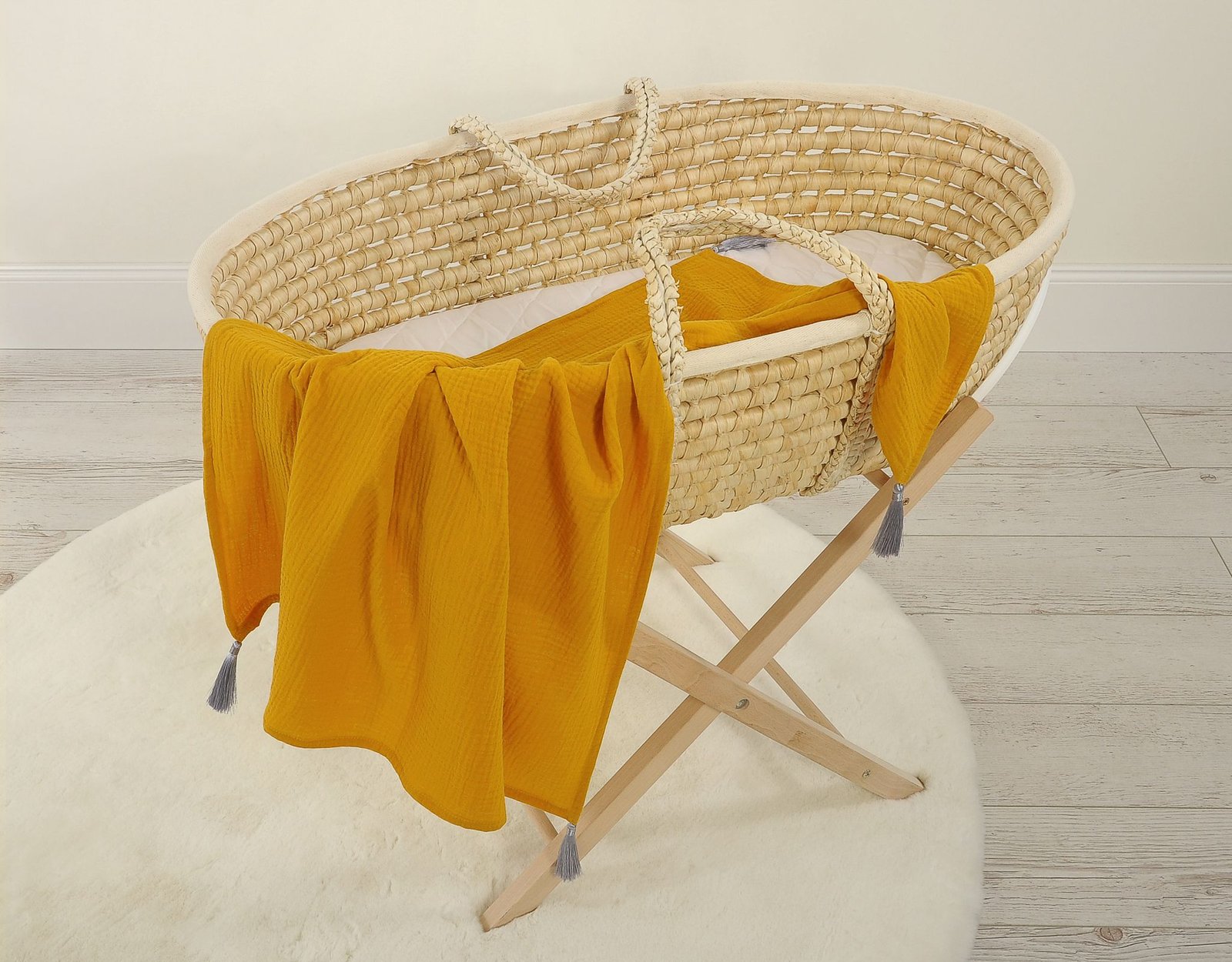 Lightweight muslin blanket for babies. Made of durable 100% certified cotton crepe muslin. Muslin is nice and pleasant to touch. It does not irritate the delicate baby skin. At the same time it is extremely easy to use.