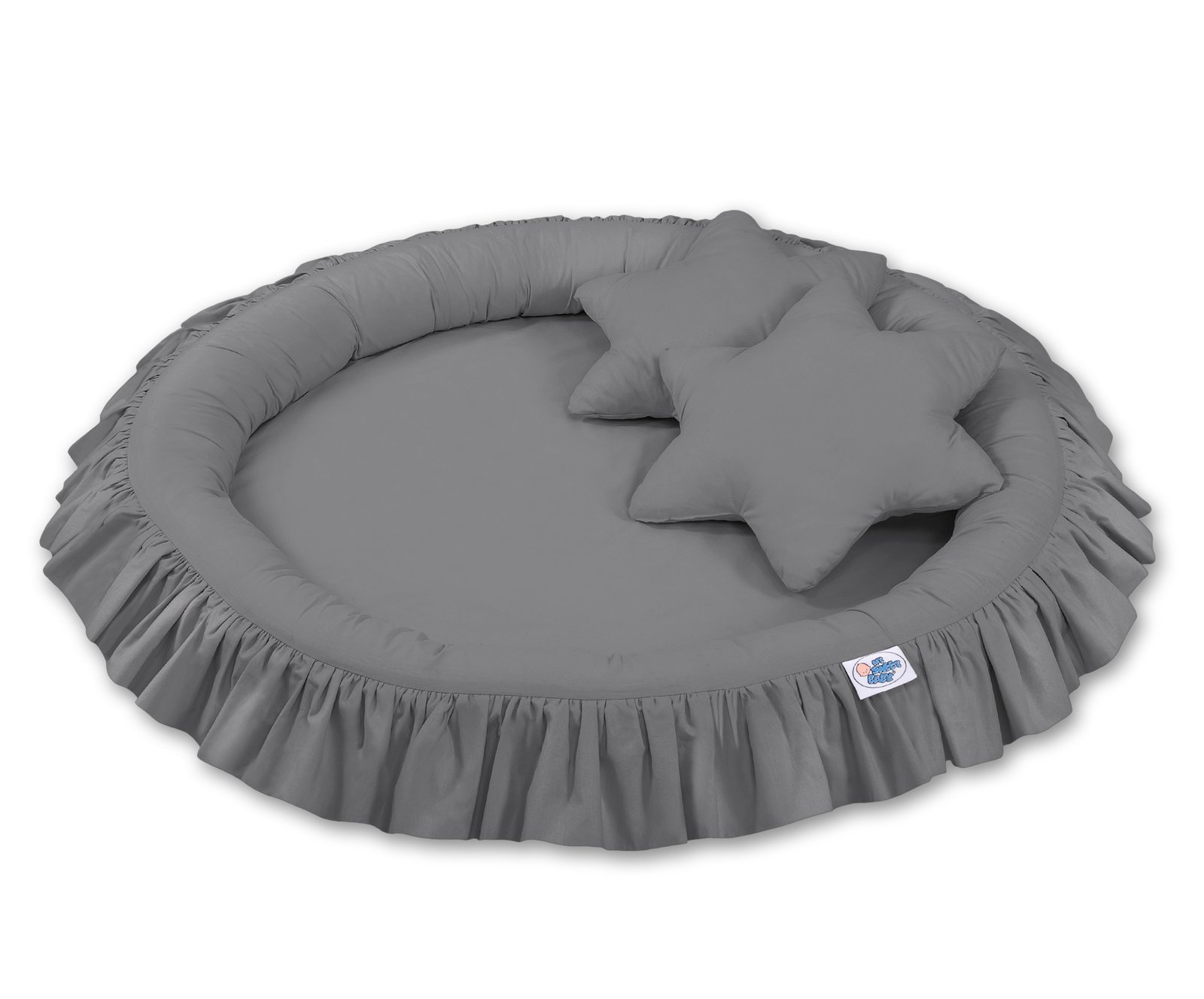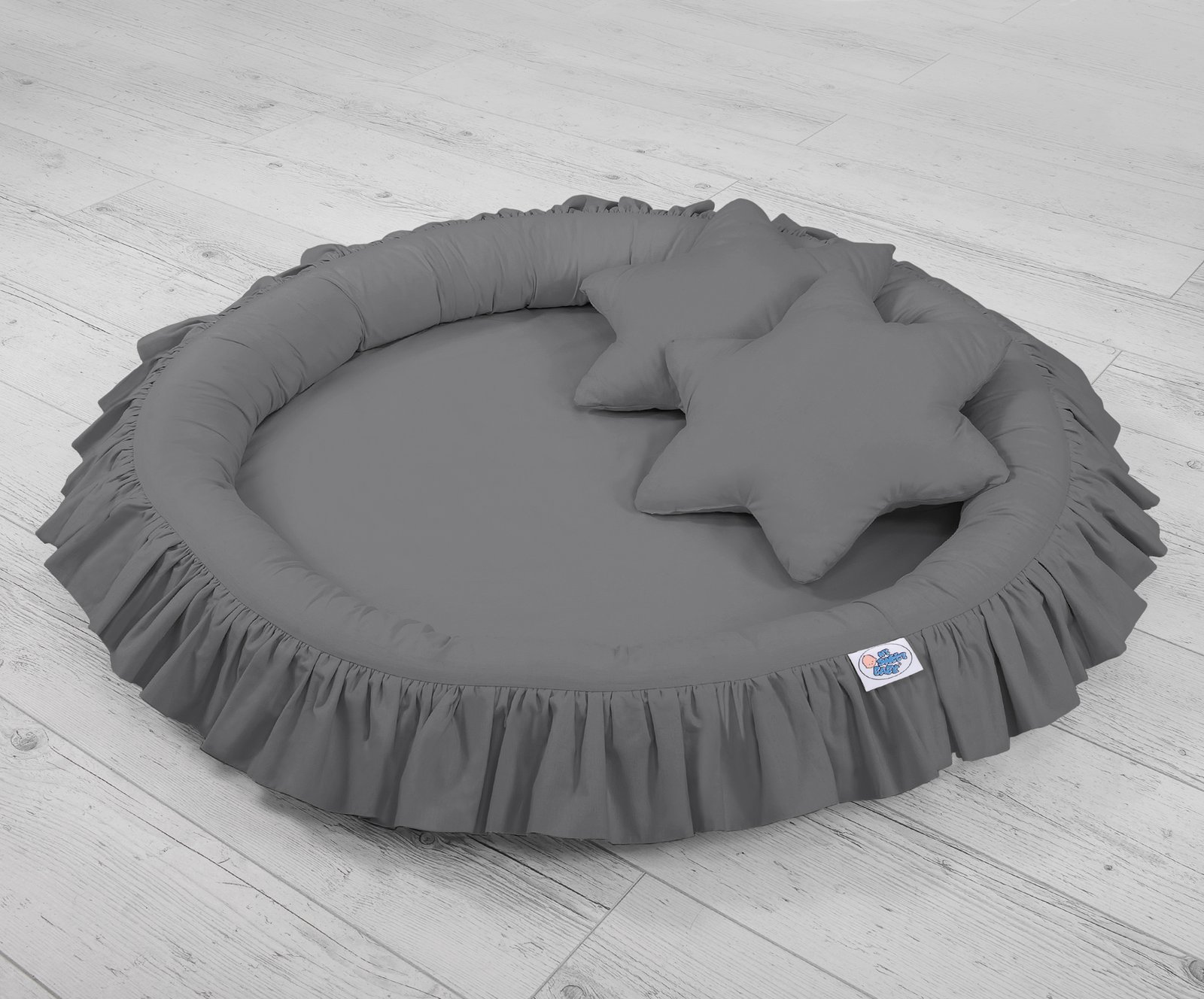Lovely nest with a flounce. A functional and practical nest to play. The nest is ideal as a place to play, or as a floor nest for the long sky. The nest with a flounce can be used since the first days of life as a safe place to rest. The soft edges provide safety for the babies. It is perfect as a playground where many toys find their place. Combined with the long sky, creates the flounce nest a beautiful play tent.