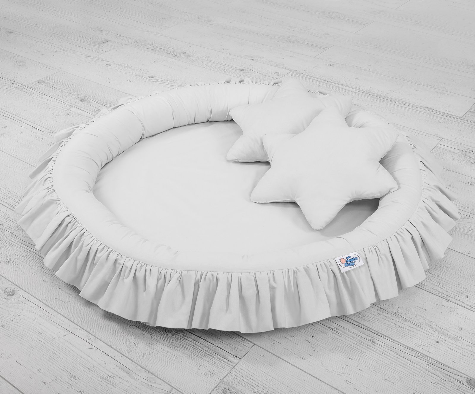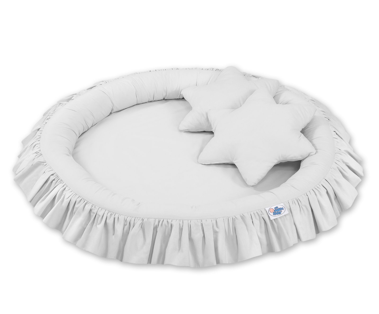 The cover is made of OKOTEX certified 100% cotton. The edge is filled with approved, non-allergenic filling: Eco –Fillball fibers. They are soft, resilience and they assure the proper air circulation. The bottom of the baby nest with flounce is made of a modern, anti-allergenic, attested material. The bottom inlay can be removed and the cover can be washed at 30 degrees.