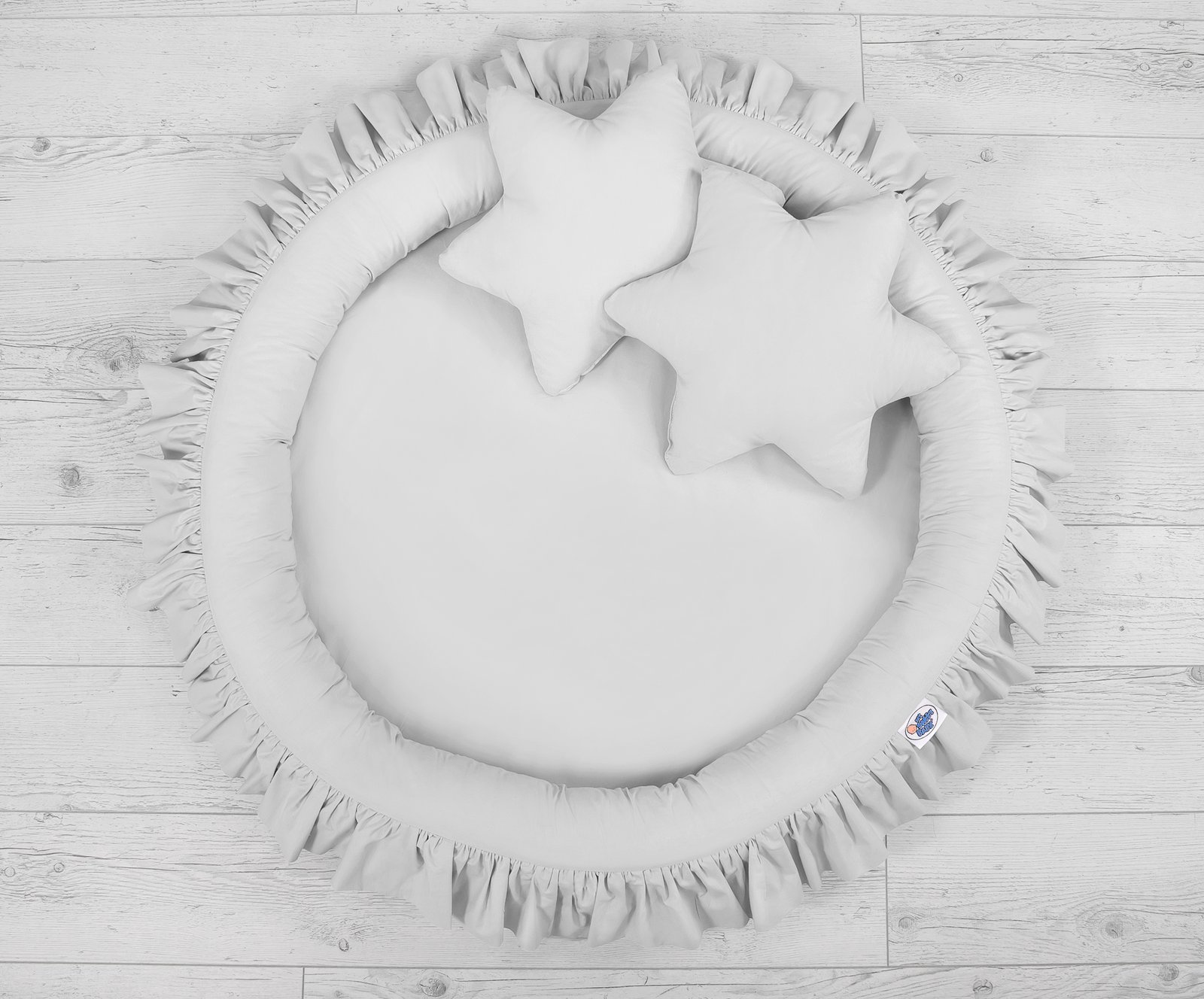 Lovely nest with a flounce. A functional and practical nest to play. The nest is ideal as a place to play, or as a floor nest for the long sky. The nest with a flounce can be used since the first days of life as a safe place to rest. The soft edges provide safety for the babies. It is perfect as a playground where many toys find their place. Combined with the long sky, creates the flounce nest a beautiful play tent.