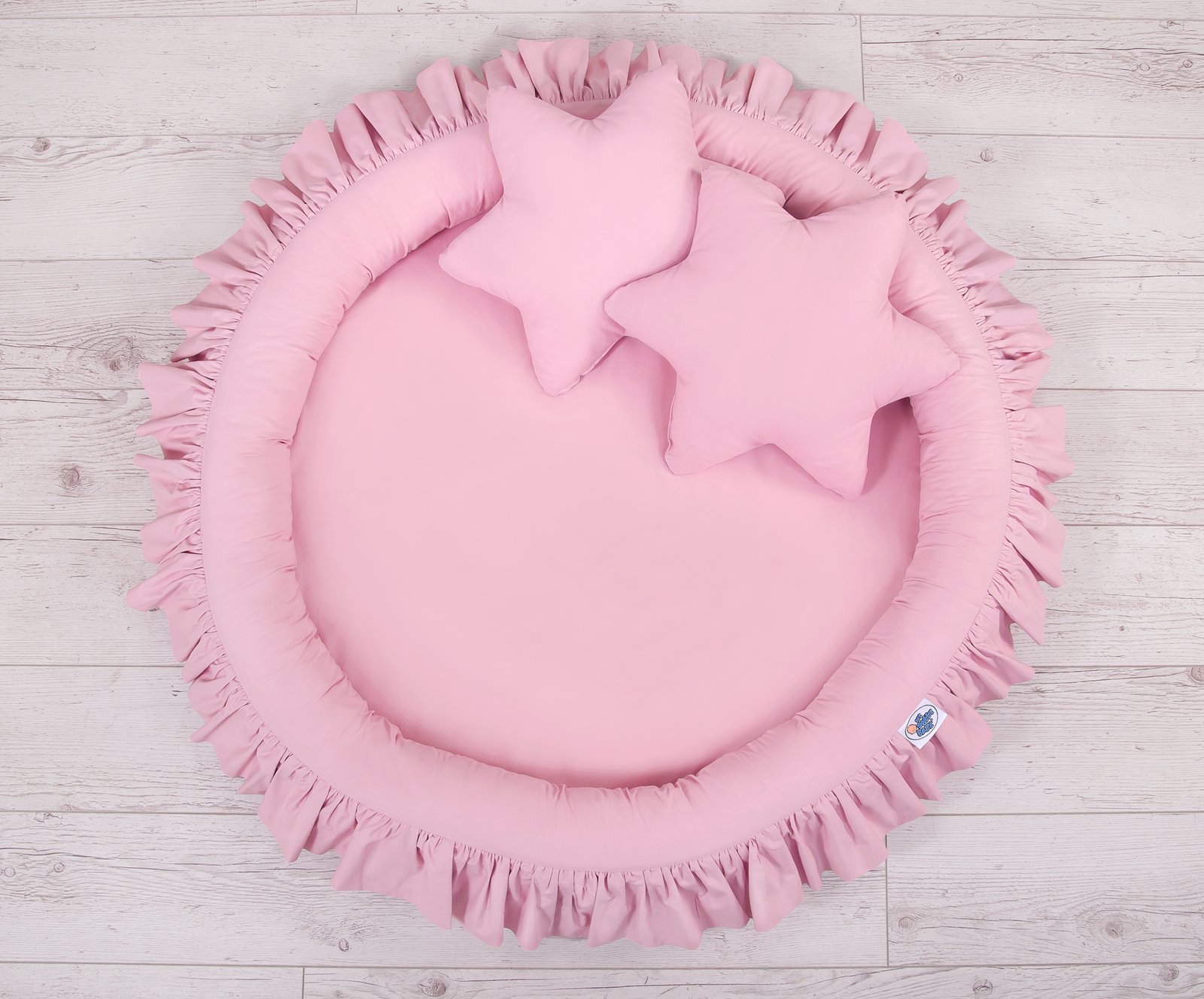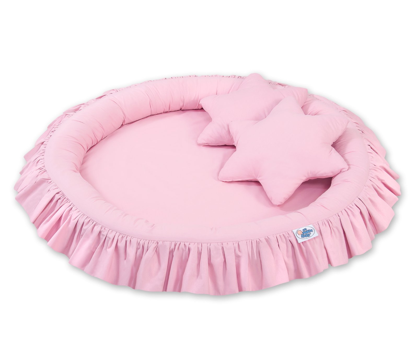 Lovely nest with a flounce. A functional and practical nest to play. The nest is ideal as a place to play, or as a floor nest for the long sky. The nest with a flounce can be used since the first days of life as a safe place to rest. The soft edges provide safety for the babies. It is perfect as a playground where many toys find their place. Combined with the long sky, creates the flounce nest a beautiful play tent.