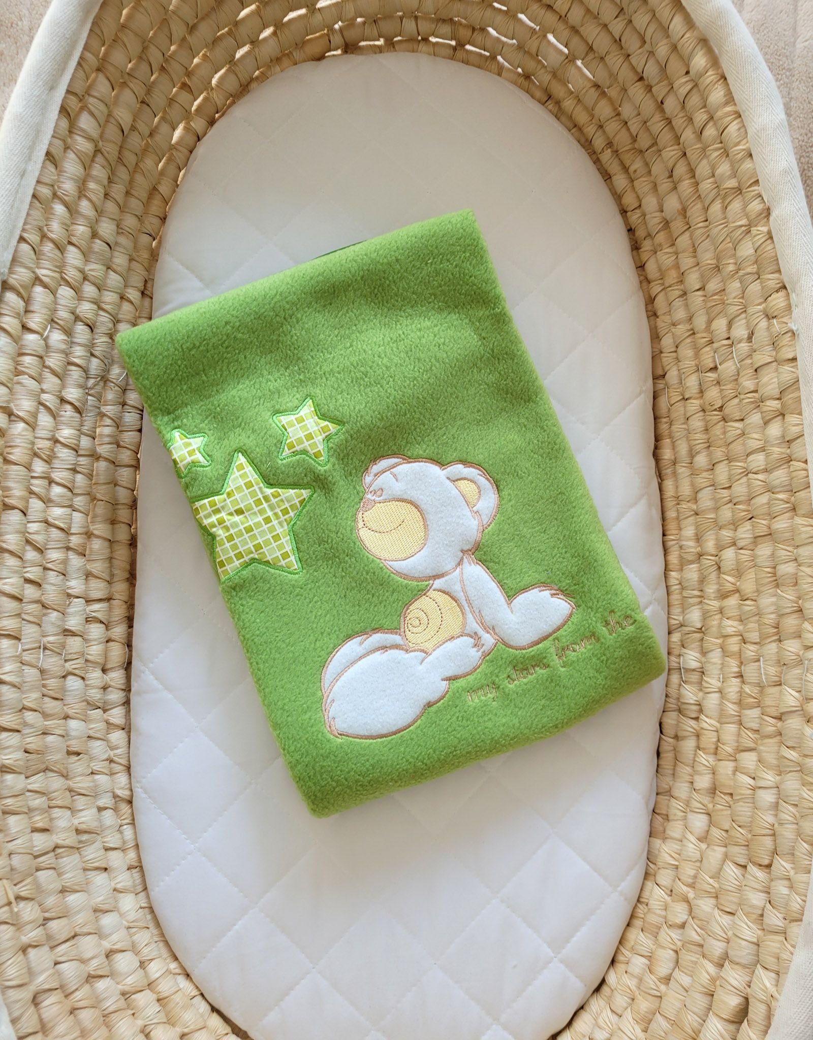 Polar fleece blanket for babies – Carlo- Teddy Bear with Stars green