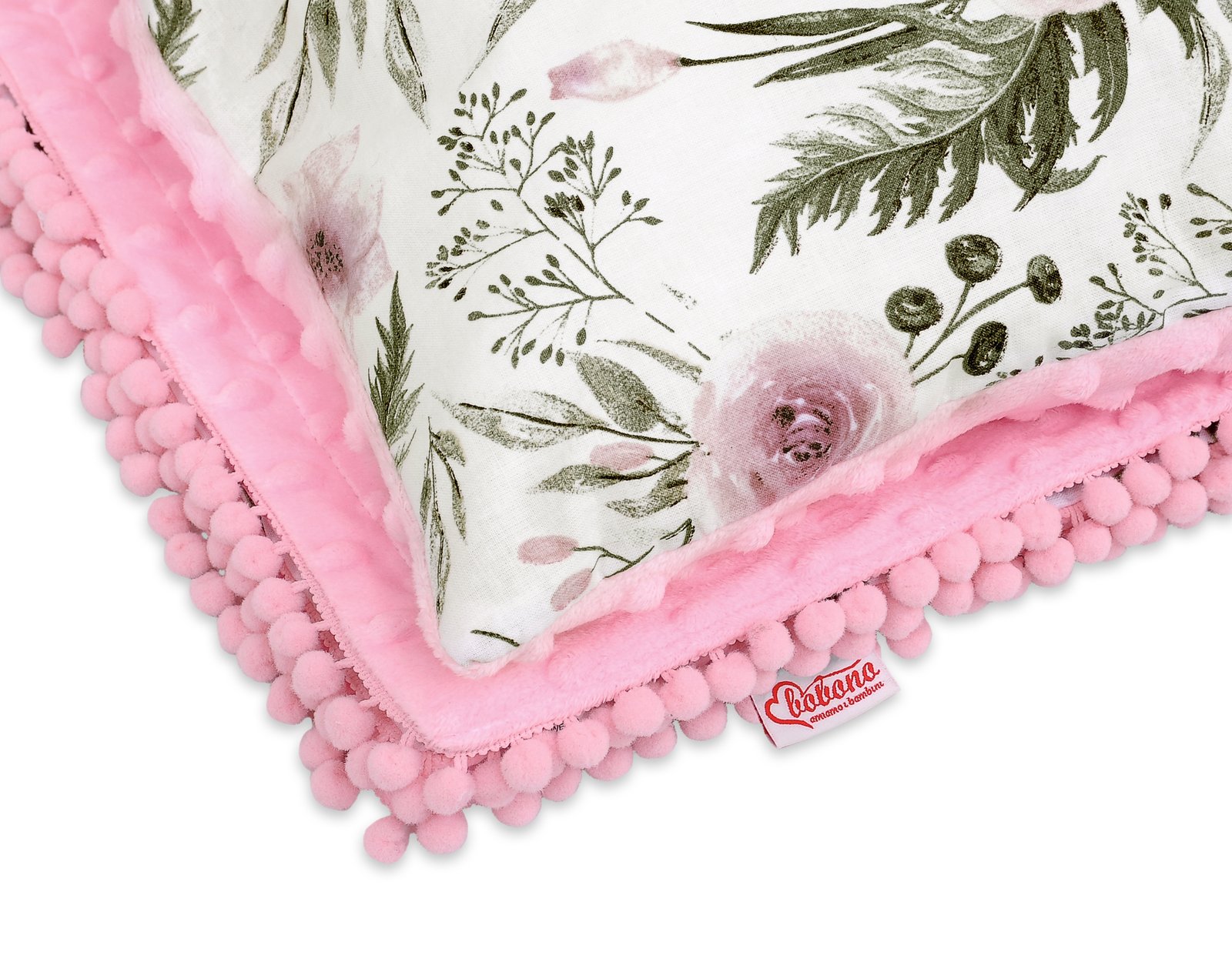 Soft, comfortable baby reversible pillow and blanket with pompons. Ideal for road and at home.