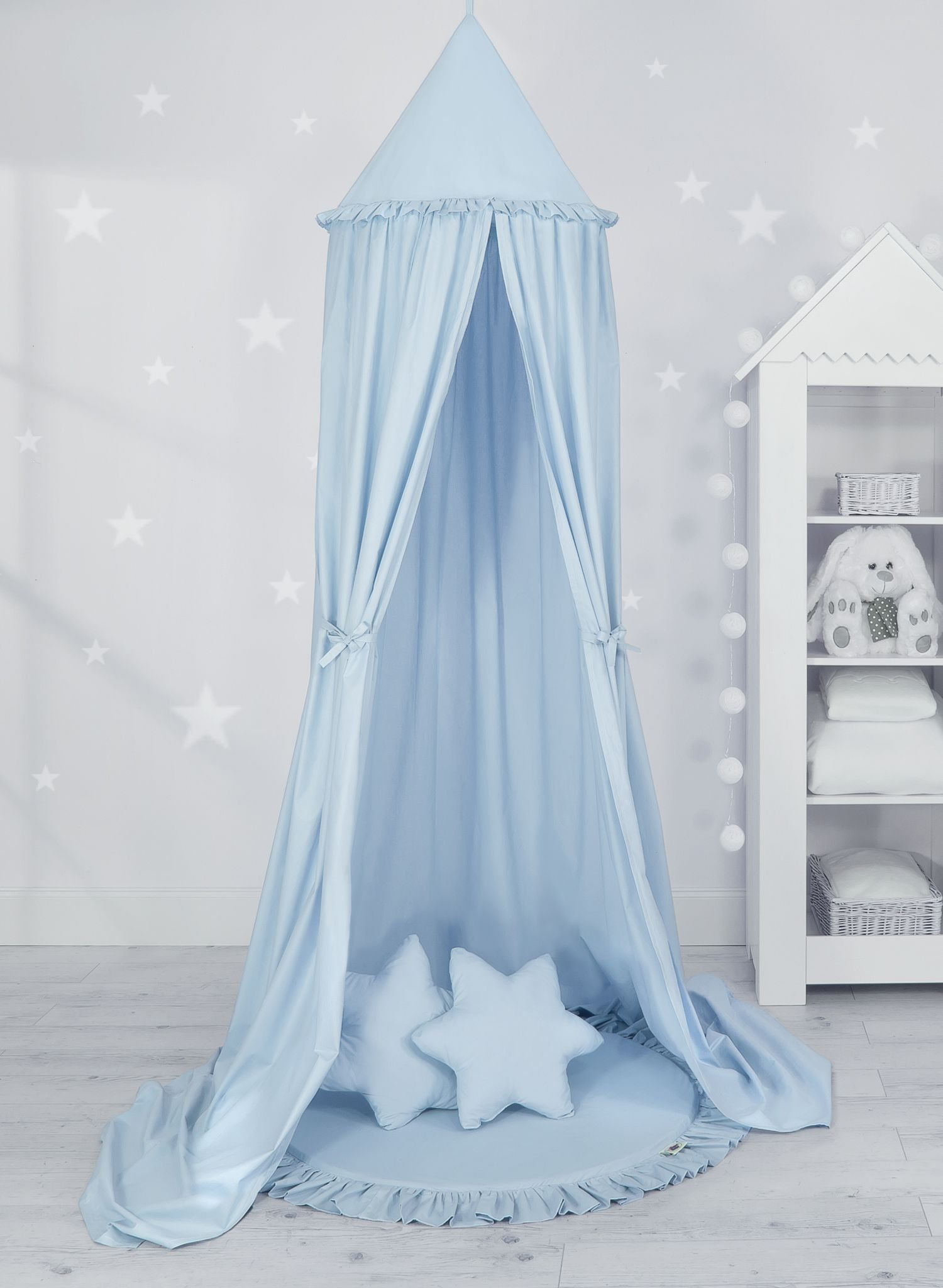 Set: Hanging canopy + Floor play mat + pillows – blue