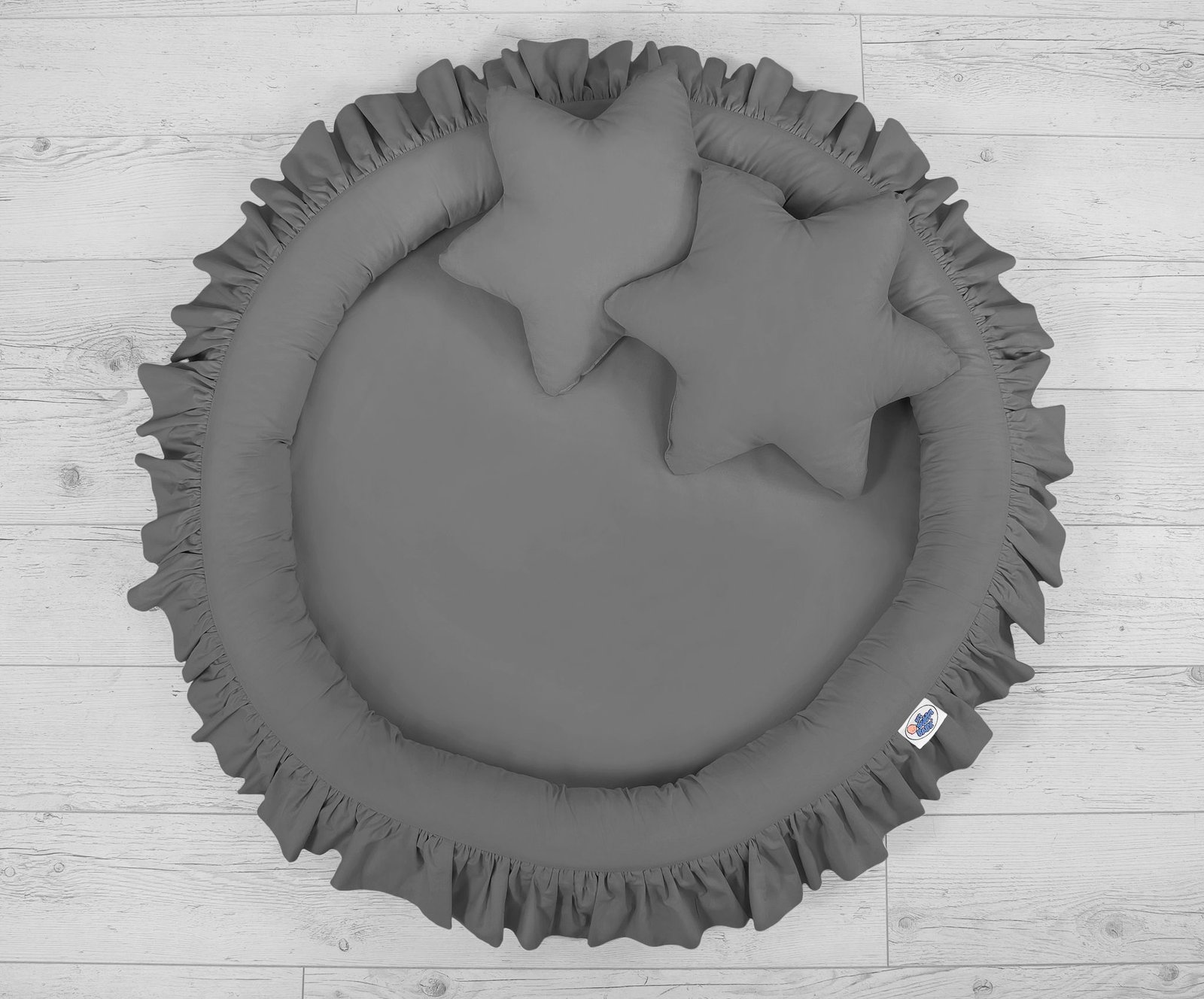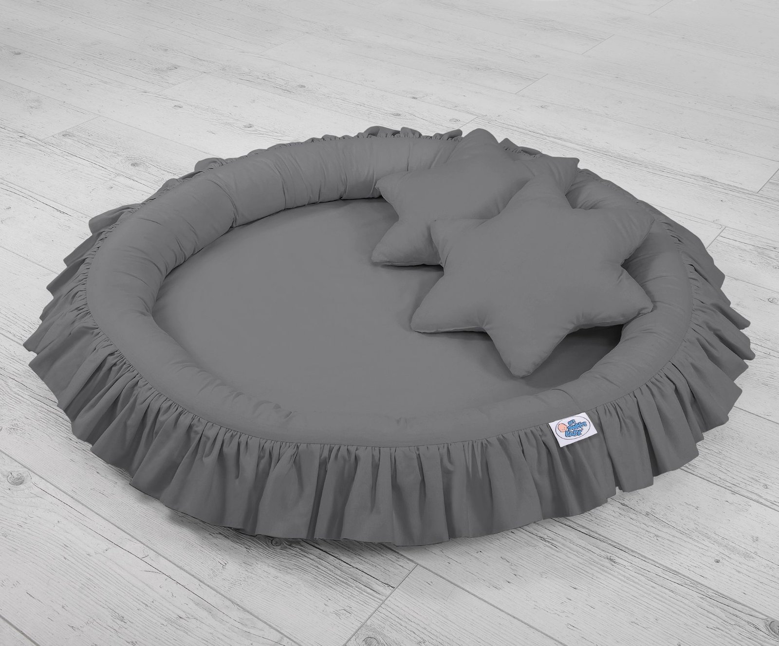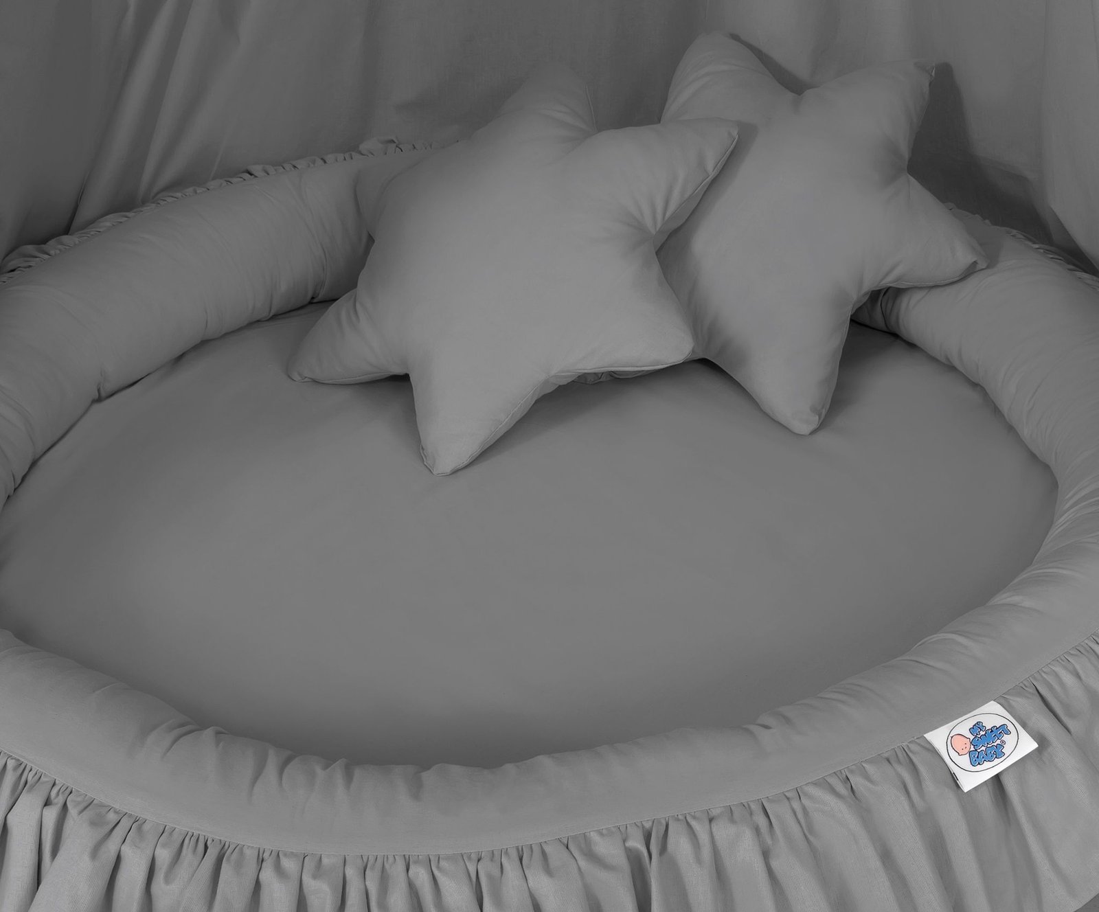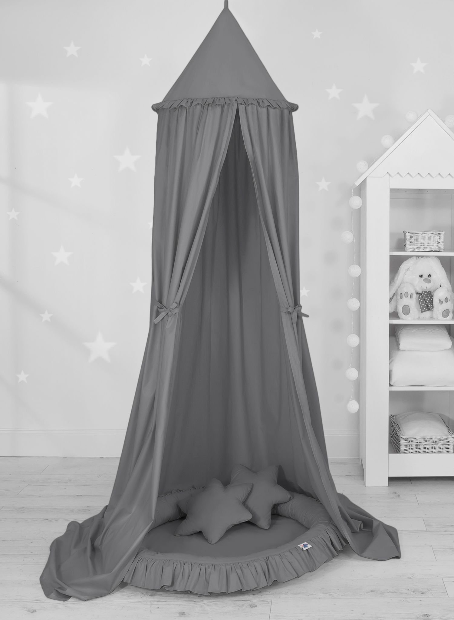 Set: Hanging canopy + Nest with flounce + decorative pillows – stars – 2pcs