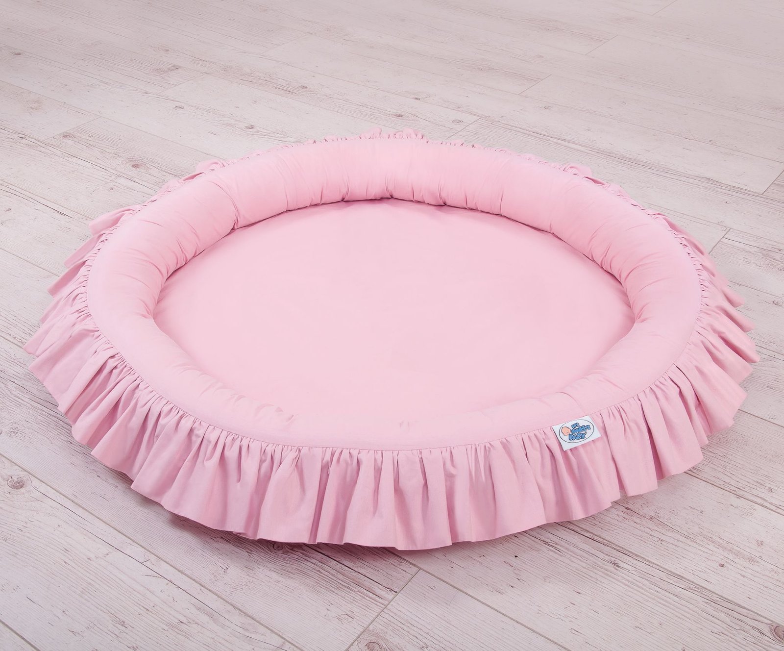 An effective long hanging canopy. A beautiful element it the children’s room. It can be used as a unique decoration of a baby cot, as well as it can create a wonderful  place to play. Hanging over the cot protect the canopy against too much light and noise creating a cozy  and safe place to rest inside the cot. The canopy can be easily mounted to the ceiling. The length of 260 cm allows to arrange the ends on the floor. This creates a perfect hiding place and playground for older children. The canopy is made of Okotex certificated, 100% cotton fabric. On the sides there are practical ribbons for tying the canopy and create a beautiful tent. The rim on the top can be removed. The fabric is washable by 30 Degrees. Combined with lovely nest with a flounce it will become a perfect place for fun. The soft edges provide safety for the babies. The edge is filled with approved, non-allergenic filling: Eco –Fillball fibers. They are soft, resilience and they assure the proper air circulation. The bottom of the baby nest with flounce is made of a modern, anti-allergenic, attested material. The bottom inlay can be removed and the cover can be washed at 30 degrees