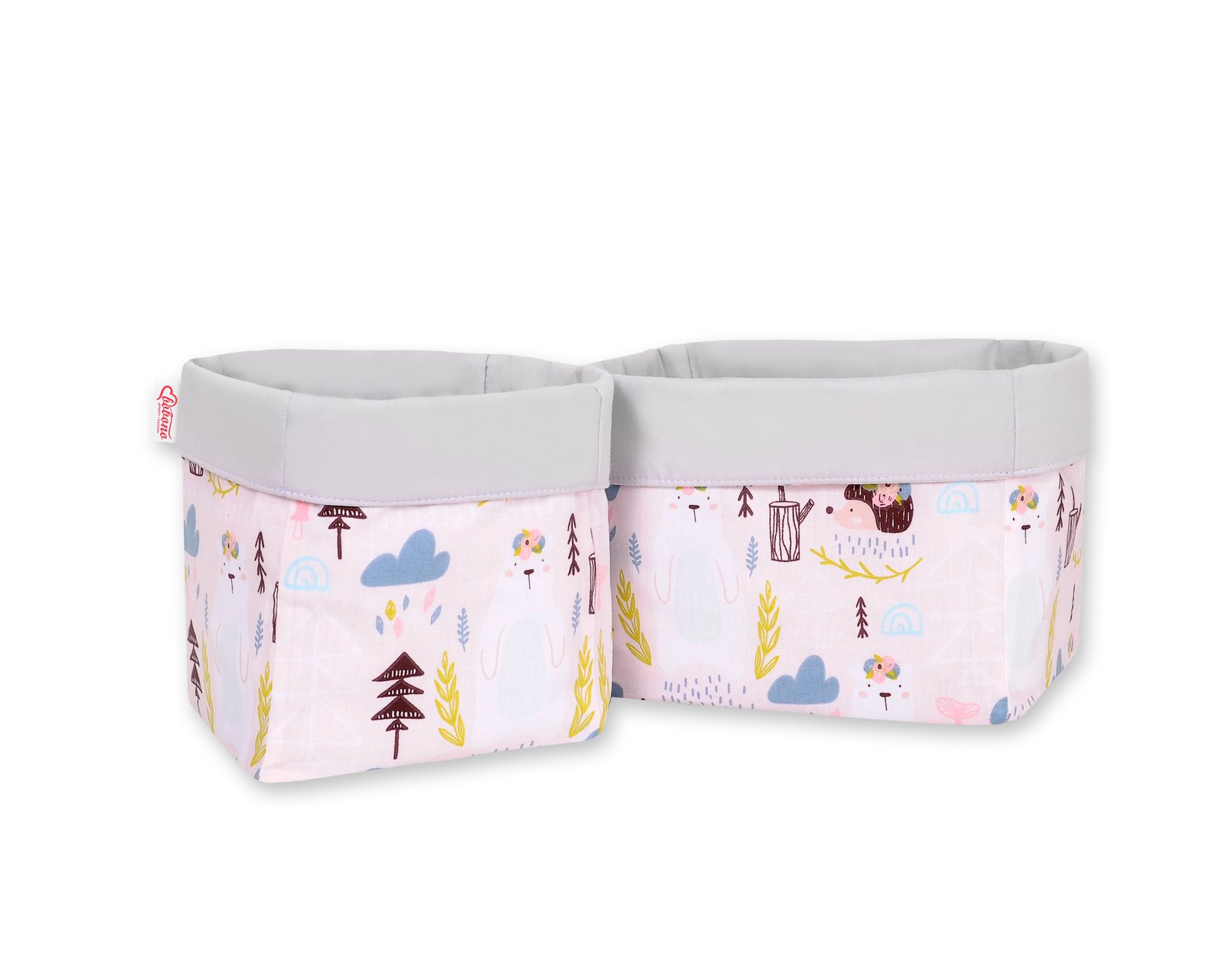 Set of 2 storage baskets will be very useful in the baby’s room.  Made of 100% cotton. The perfect solution to keep the children’s room in order. Very handy, great for storing nappies, cosmetics, other small items. The whole set is machine washable, dries quickly and does not change shape.