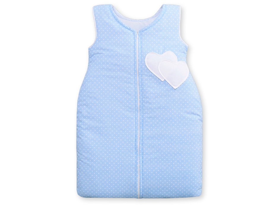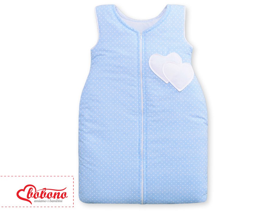 Sleeping bag- Hanging hearts white dots on blue