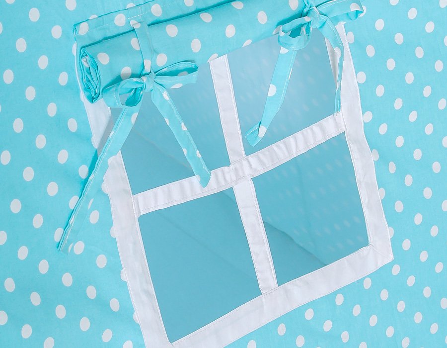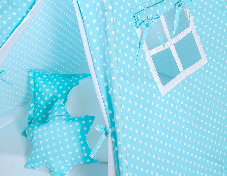Thanks to its special design, the tent folds up easily and is very lightweight, making it easy to carry and set up anywhere. It has been made with attention to every detail so that it is safe and stable during play. The poles that build the tepee have been hidden in special tunnels – they are tied together at the top with a fastening string and finished with a special plastic cap at the bottom. The total height to which the tent unfolds is 150cm. The diameter of the lower part of the Tipi is approx. 130cm. The tent cover is removable and machine washable. There is a window with a curtain in the side wall of the tent, and the entrance to the tent has special ties that can be tied so that the child has a free passage into the tent and out. Once the curtains at the entrance have been lowered, the tent can provide an ideal hiding place during playtime.
