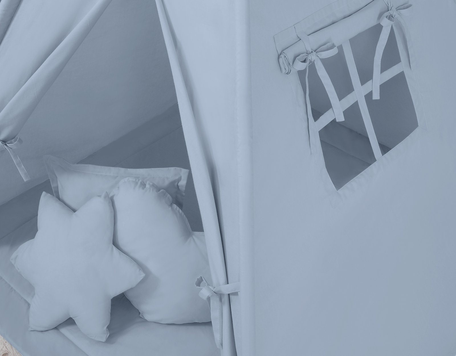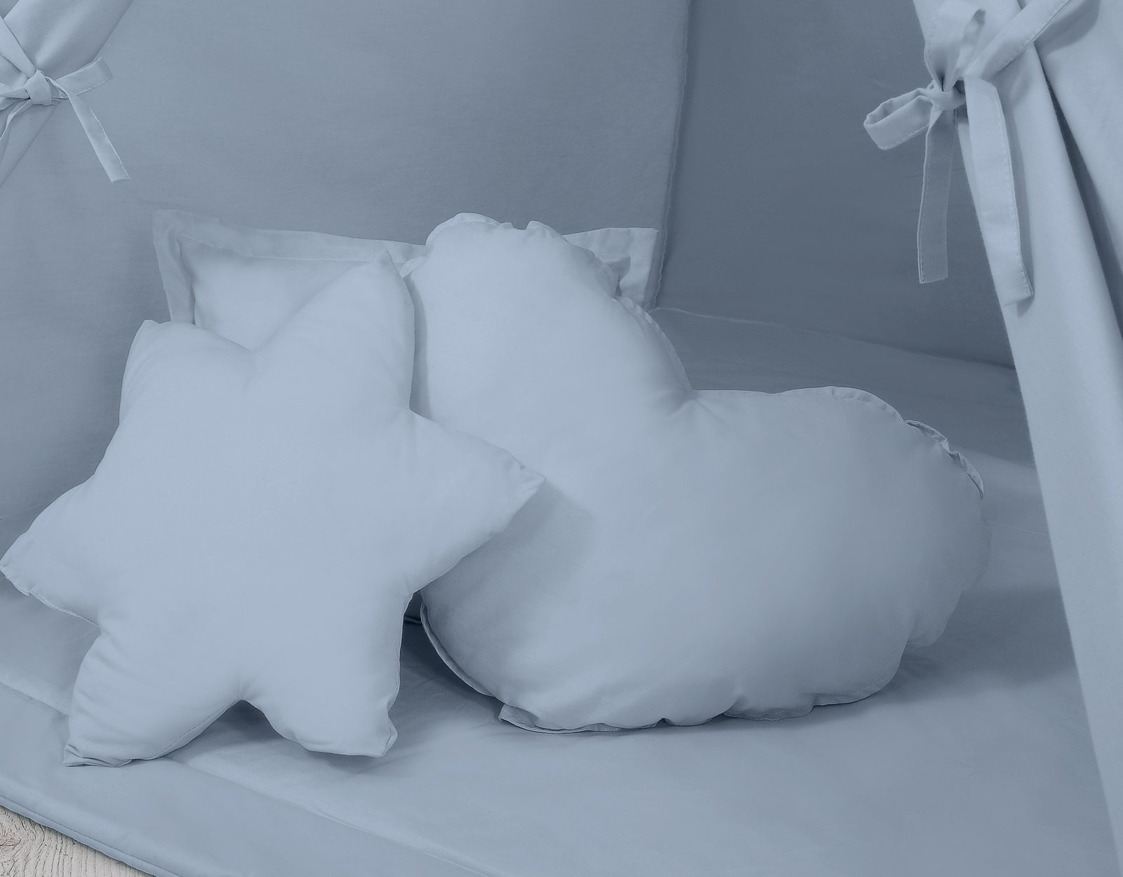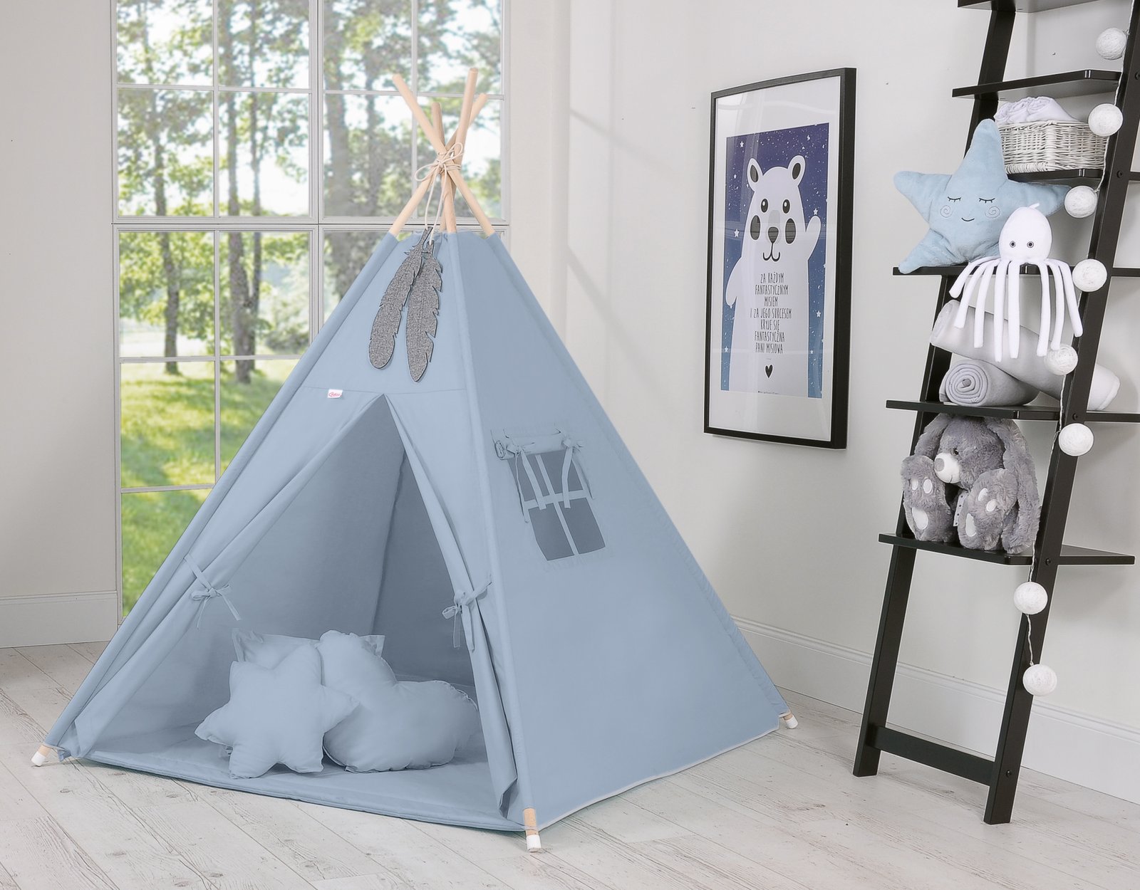 Teepee tent for kids + playmat + pillows + decorative feathers – pastel blue