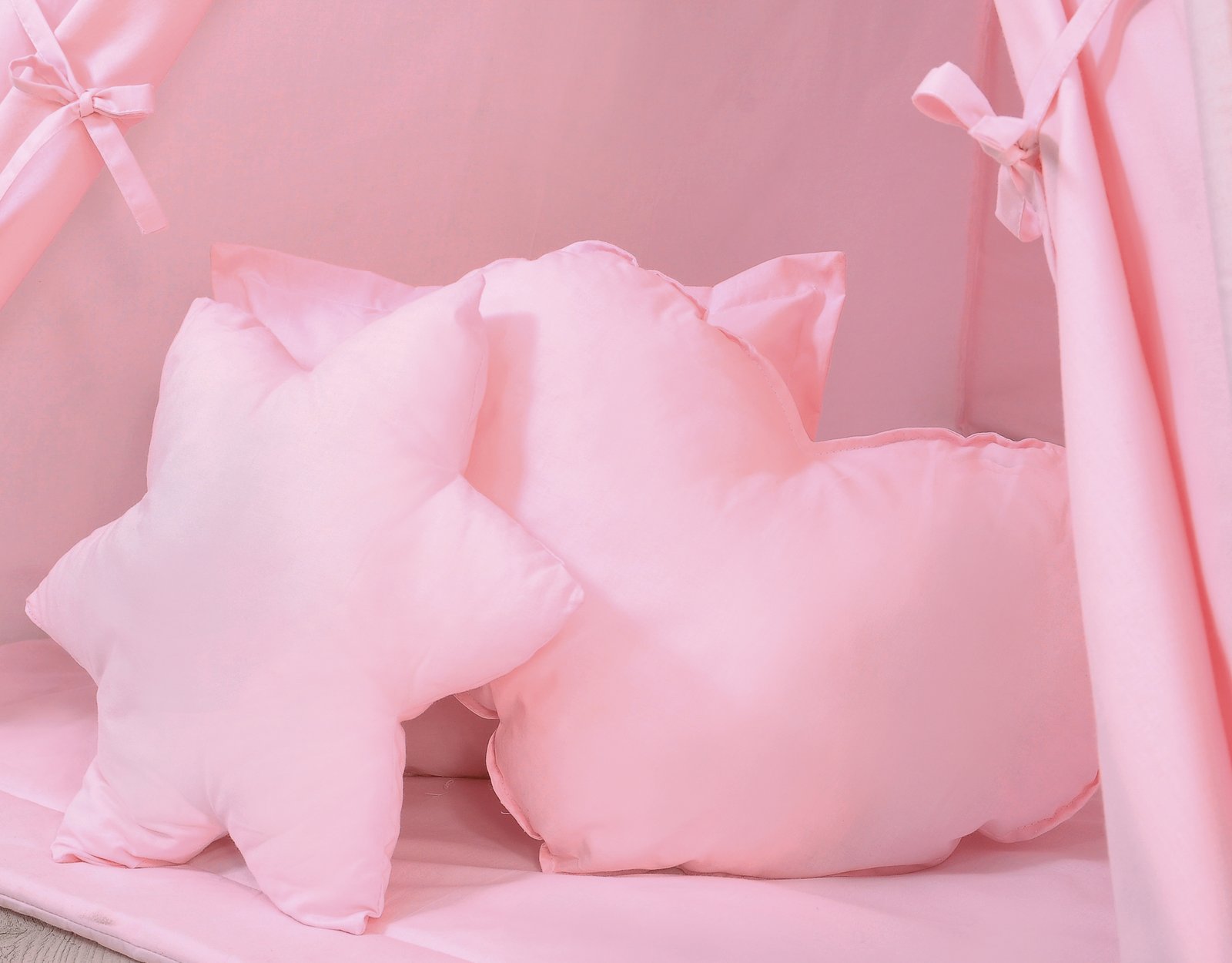 Includes a set of 3 pillows colour-coordinated with the tent in three different shapes: heart, star and square. Made from the highest quality certified 100% cotton, filled with special certified fibre – ECO FILLBALL.