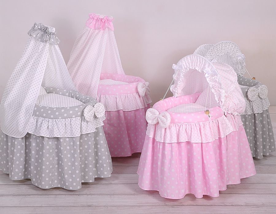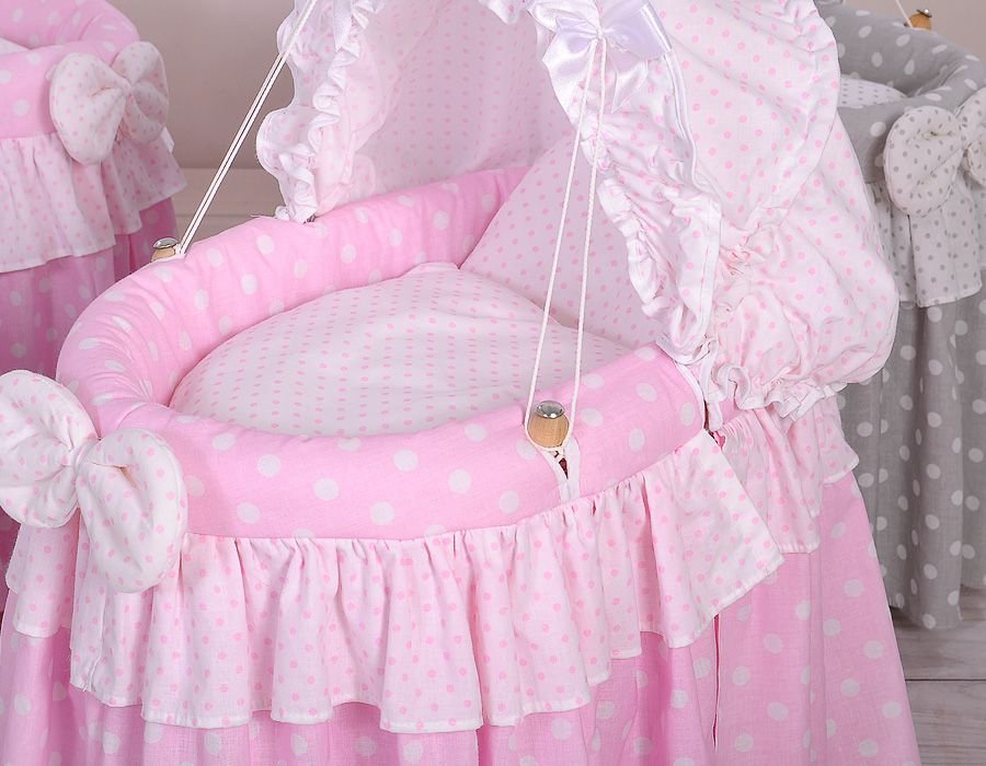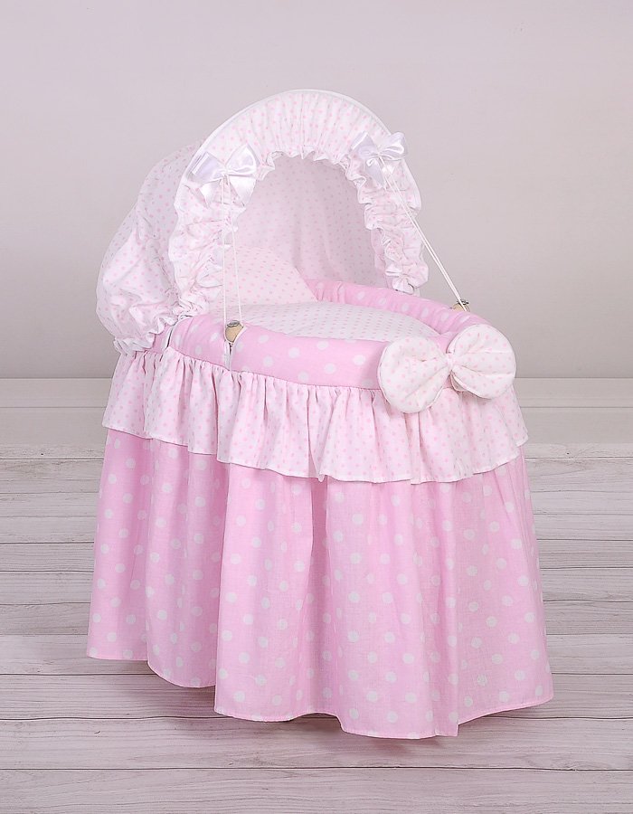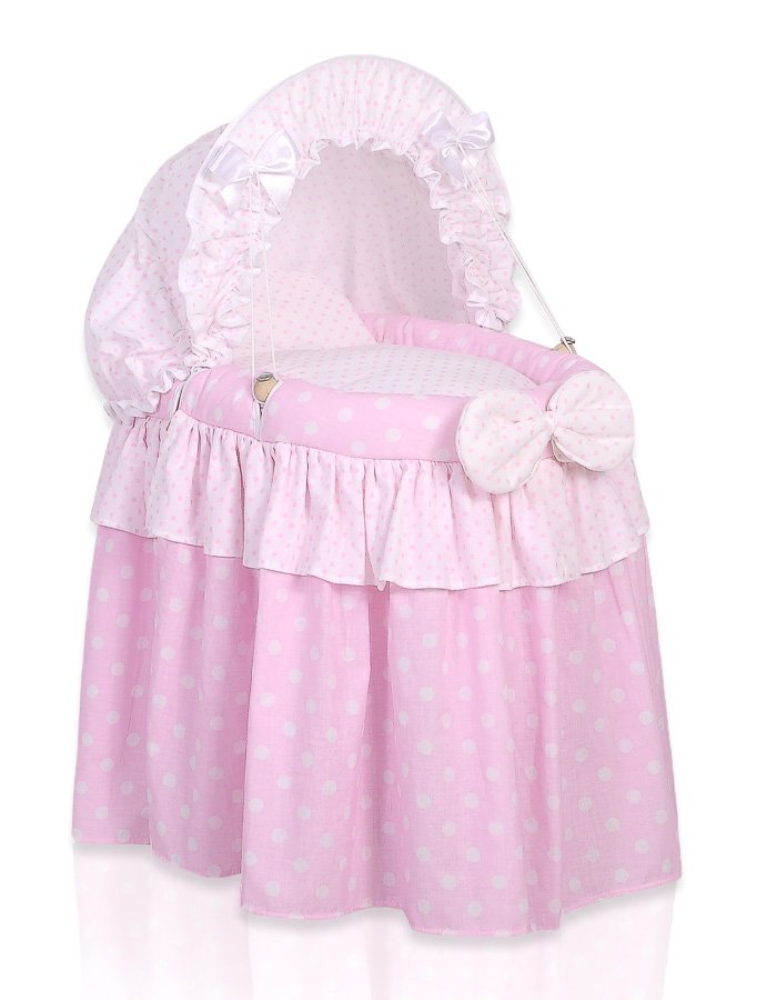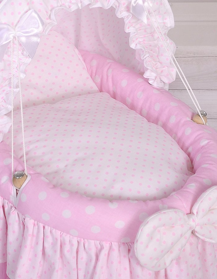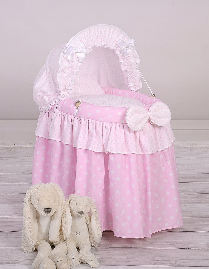 Wicker crib for doll – Moses basket for dolls with hood – pink