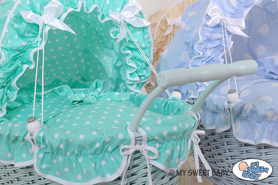 A great gift for a little girl – a beautiful wicker doll trolley MY SWEET BABY, stylish and unique. Handmade pram, top quality handicraft. Natural Polish wicker from ecological cultivation. The pram has a beautiful rounded shape. Wooden solid chassis made of natural beech wood, top quality. Solid stable handle makes it easy to steer the pushchair comfortably. High chassis comfortable for an older child. Wooden wheels protected by rubber tyre. The wheels are mounted on metal axles. A special “click-clack” safety device securely fastens the wheels and makes the wheels turn easily.