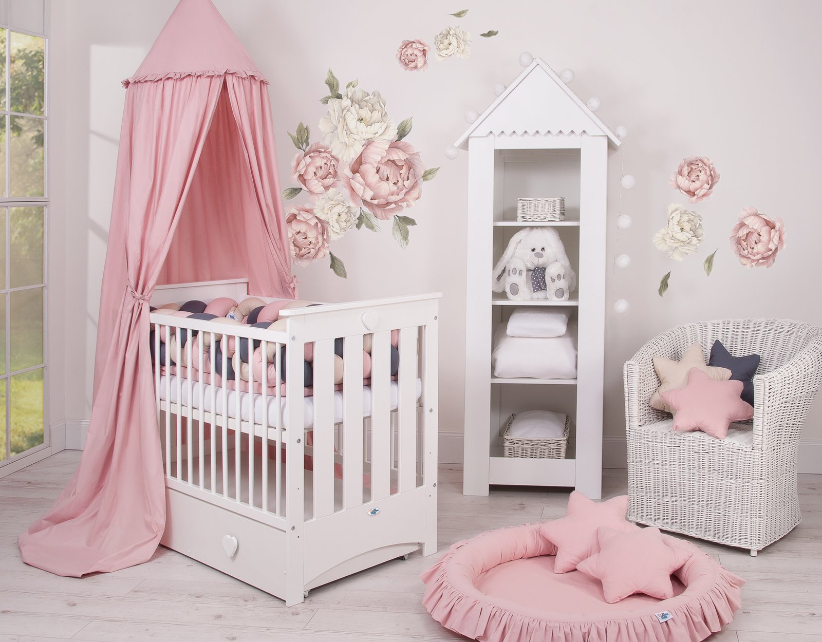 * Three height levels of mattress frame (base) – the top level for easy care of baby, the middle level for babies for easy caring, scrolling and safety for baby. The lowest level when the child already starts walking. When you remove the removable bars- your child will have the possibility to get out of the cot.
